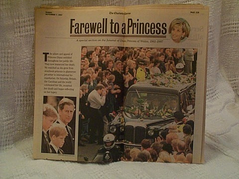 Princess Diana tribute article from the Charlotte observer Sept 7, 1997. Good condition.